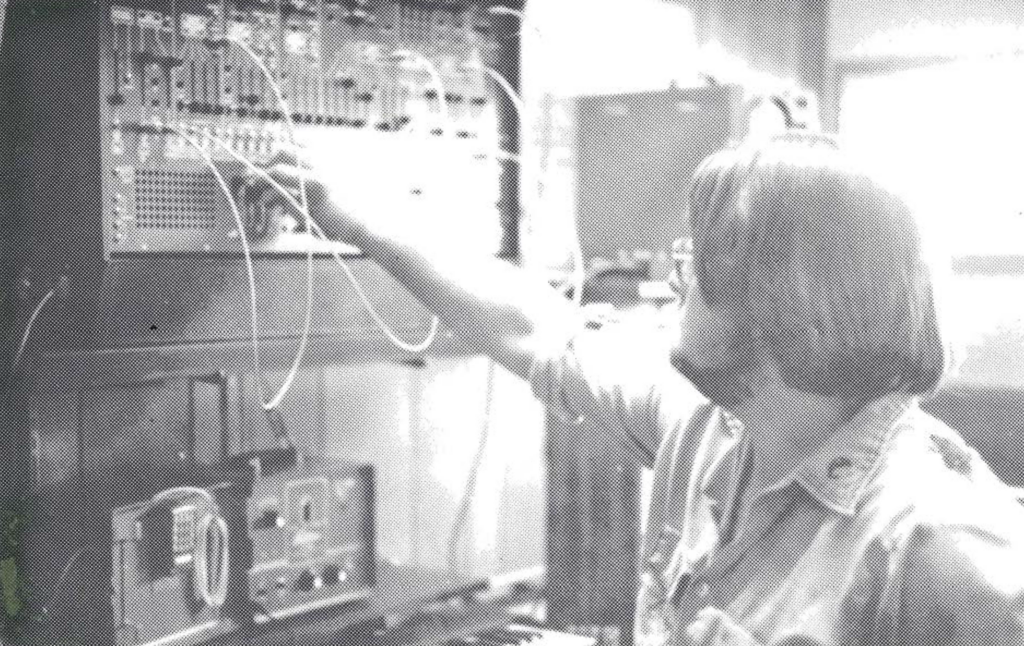 Though he’s not a Todd Rundgren (the synthesizer wizard), he is Steve Edwards, a TCC student demonstrating one of the synthesizers. The synthesizer classes, under the direction of Dr. Murry Alewine and Tom Seay, are in their second year. “Like any other music course, credit is given upon completion of the course. In a way, the synthesizer as a course is like a refreshment to taking standard courses,” commented Dr. Alewine. Photo by Pat Rogers